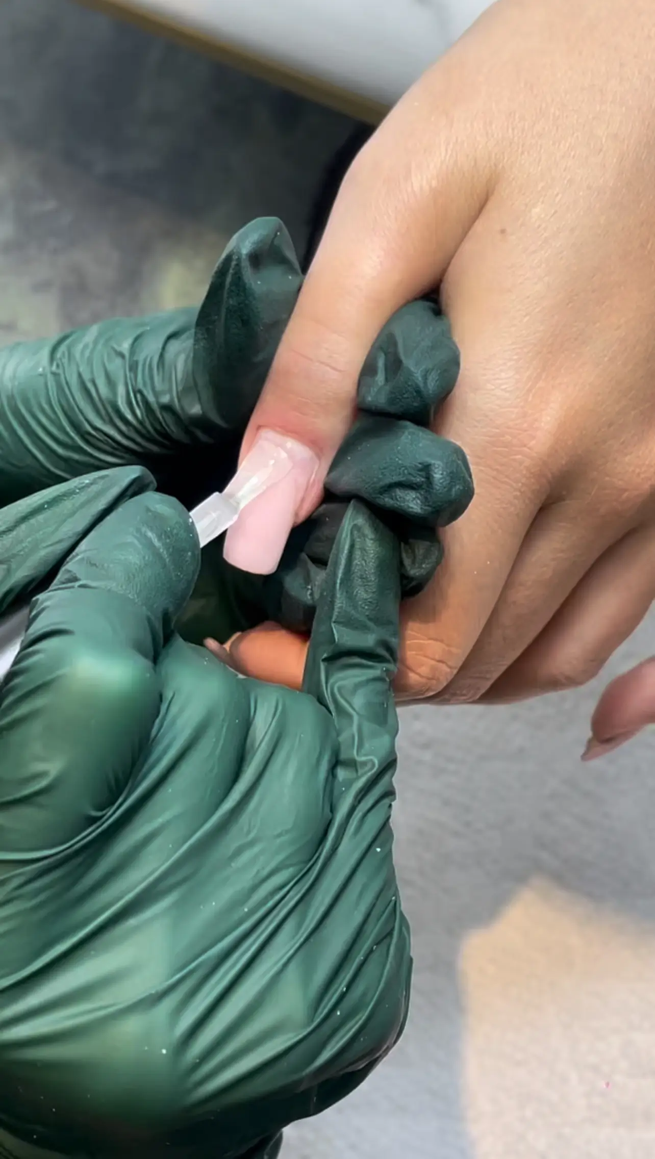 Gel manicure with correction of extended nails using extra strong polygel material.